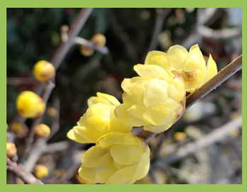 花は、水仙、ロウバイ、梅の花が