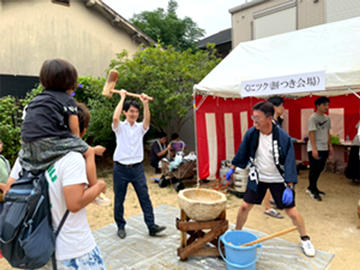 茶屋公園では,お餅つき、射的、三角くじ